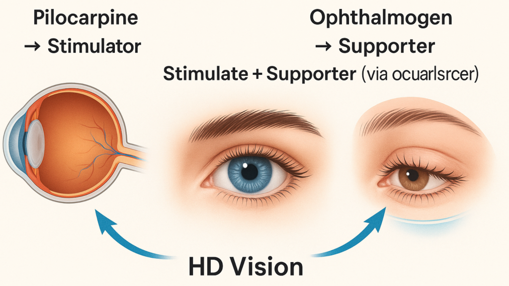 Κλειδί:Stimulate (Pilocarpine) + Support (Ophthalmogen) = ευκρινής, άνετη, σταθερή όραση μέσα στη μέρα.