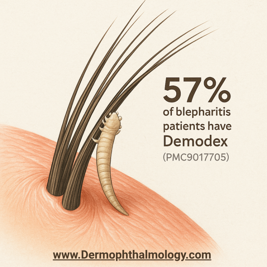 Μελέτη: 57% των ασθενών με βλεφαρίτιδα είχαν Demodex, που σχετίζεται άμεσα με την απώλεια βλεφαρίδων (PMC9017705).