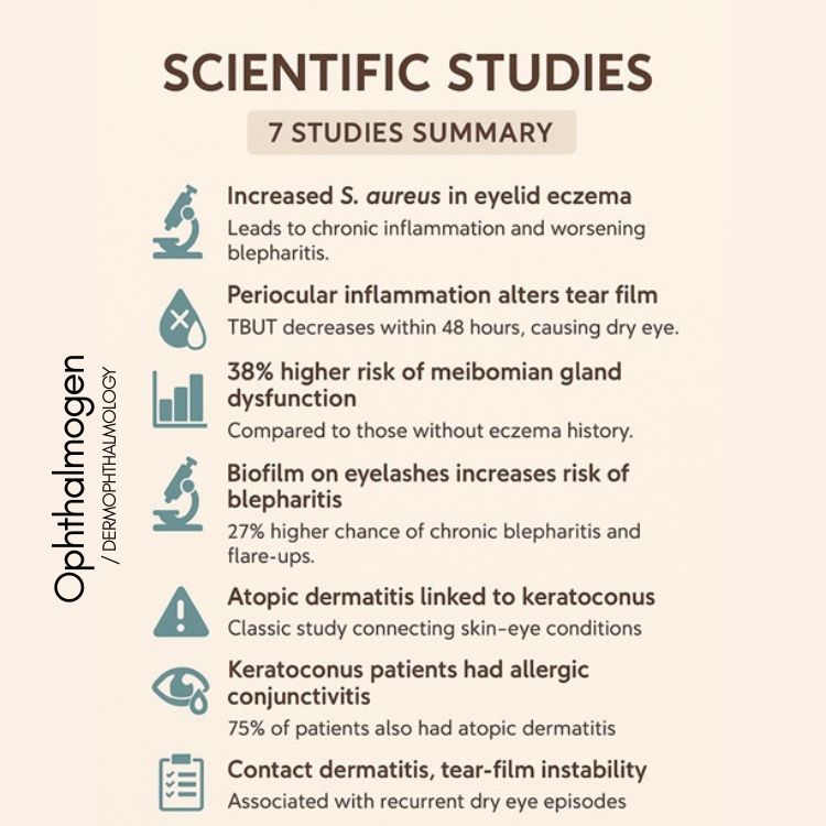 Σύμφωνα με διεθνείς μελέτες, το έκζεμα των βλεφάρων είναι μία από τις δερματικές διαταραχές που επηρεάζουν πιο άμεσα την όραση, την ποιότητα ζωής, τη σταθερότητα του tear film και την υγεία των Μεϊβομιανών αδένων.