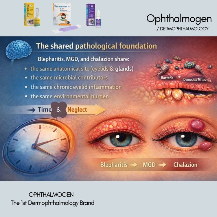 Γιατί δεν είναι ξεχωριστά προβλήματα, αλλά διαφορετικά στάδια της ίδιας παθολογίας των βλεφάρων — και πώς η σωστή υγιεινή μπορεί να προλάβει την εξέλιξη