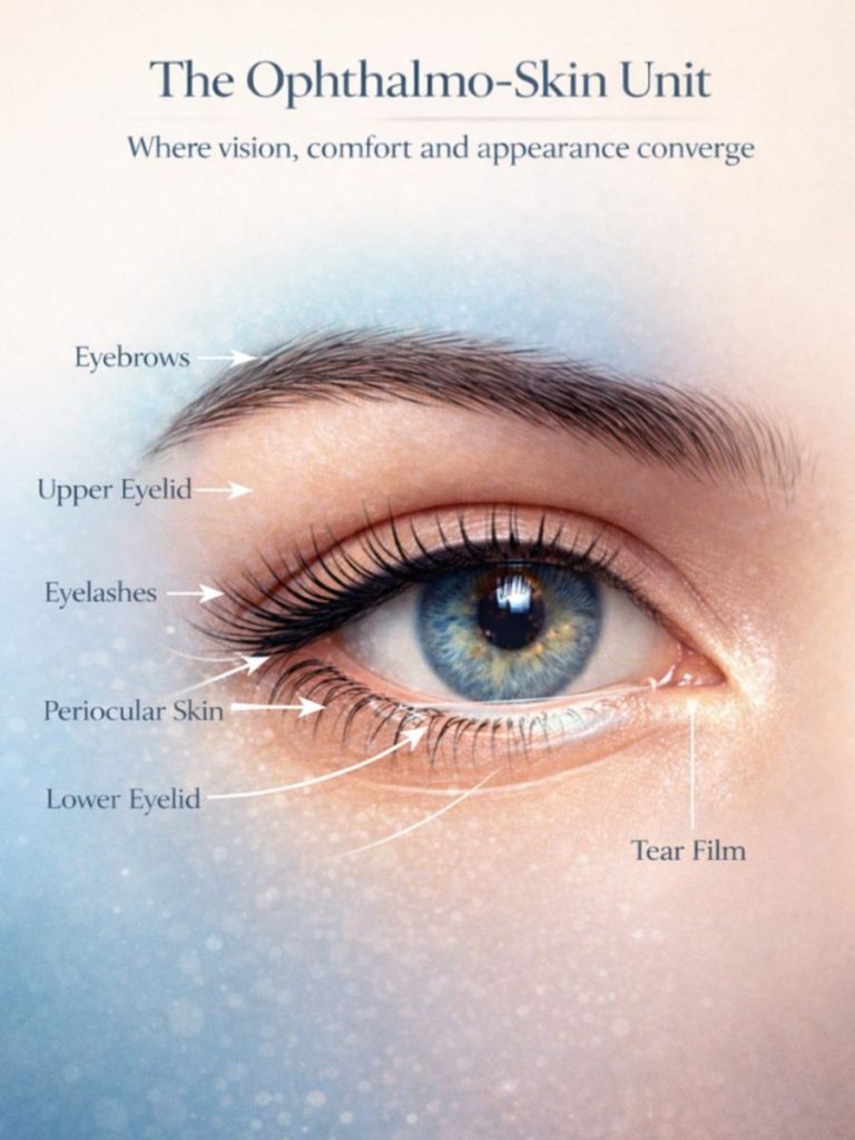 Το μήνυμα αυτό συνοψίζει τον Άξονα Ματιού-Δέρματος (Eye–Skin Axis), αναδεικνύοντας ότι η κατάσταση του οφθαλμοδέρματος καθορίζει τη λειτουργία και την υγεία της οφθαλμικής επιφάνειας.