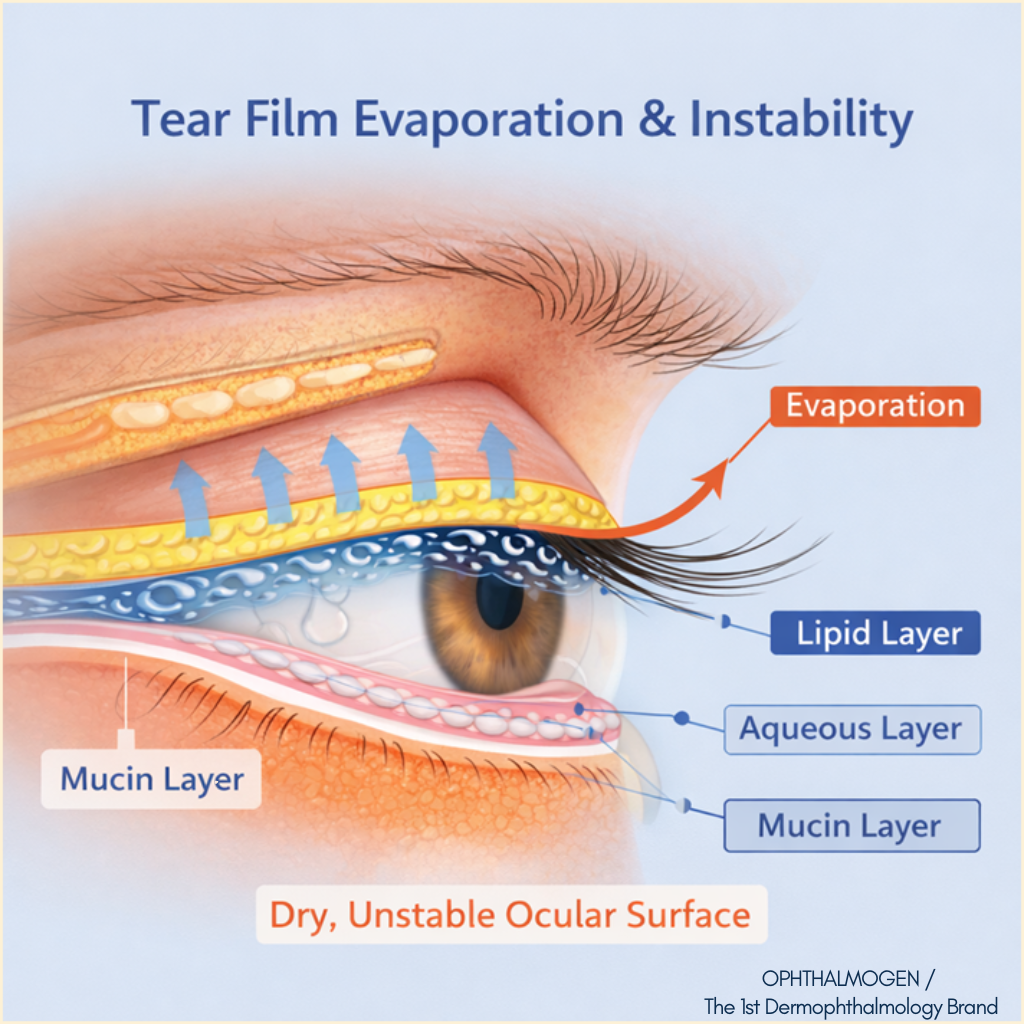 Στις περισσότερες περιπτώσεις,οφείλονται σε δυσλειτουργία των βλεφάρων και των μεϊβομιανών αδένων