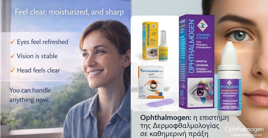 - Ophthalmogen Spray ψεκασμός βλεφάρων → αντιμικροβιακή δράση, ενυδάτωση, έλεγχος Demodex.