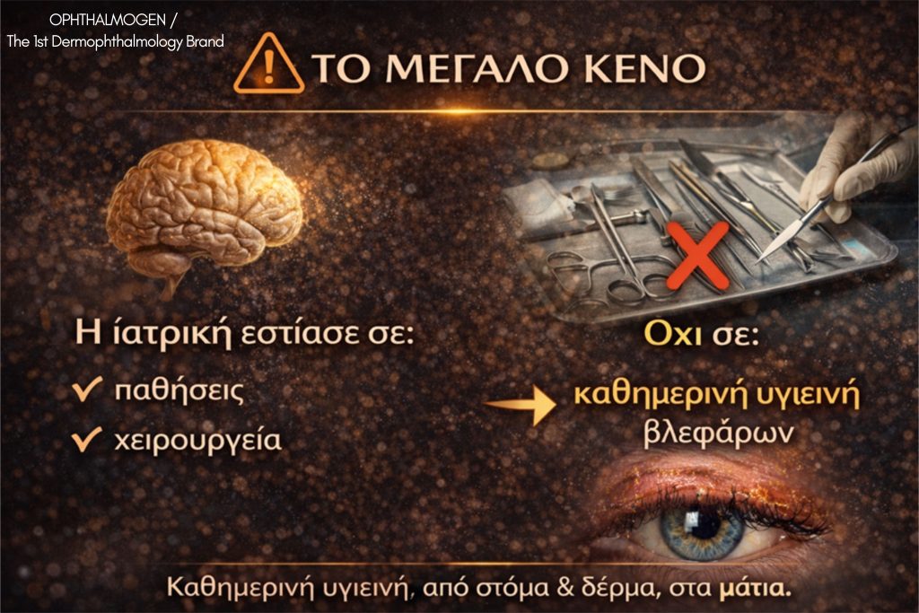 Για δεκαετίες, η οφθαλμολογία επικεντρώθηκε σε παθήσεις και χειρουργεία. Η αισθητική ιατρική εστίασε στο αποτέλεσμα, όχι στη ρίζα. Έτσι, το πιο βασικό στοιχείο –η καθημερινή φροντίδα των βλεφάρων, των βλεφαρίδων και της οφθαλμικής επιφάνειας– έλειψε από την κουλτούρα μας.