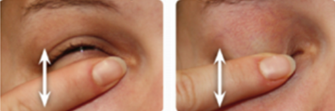 - Massage the upper and lower eyelid using a clean finger and a small amount of gel.