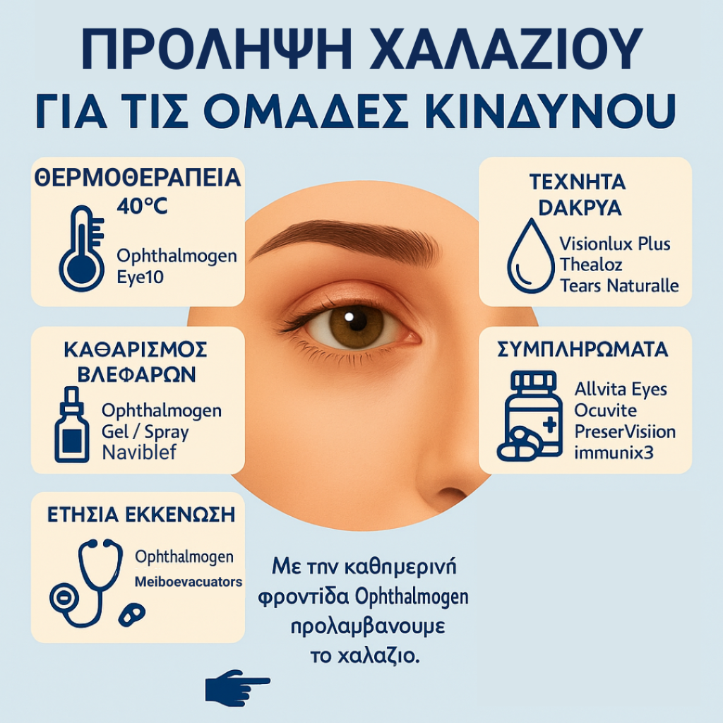 Chalazion prevention requires consistent eyelid hygiene, proper use of artificial tears, and nutritional support. Ophthalmogen products (Eye10, Gel, Spray, MeiboEvacuators) provide a complete solution for long-term eye health.