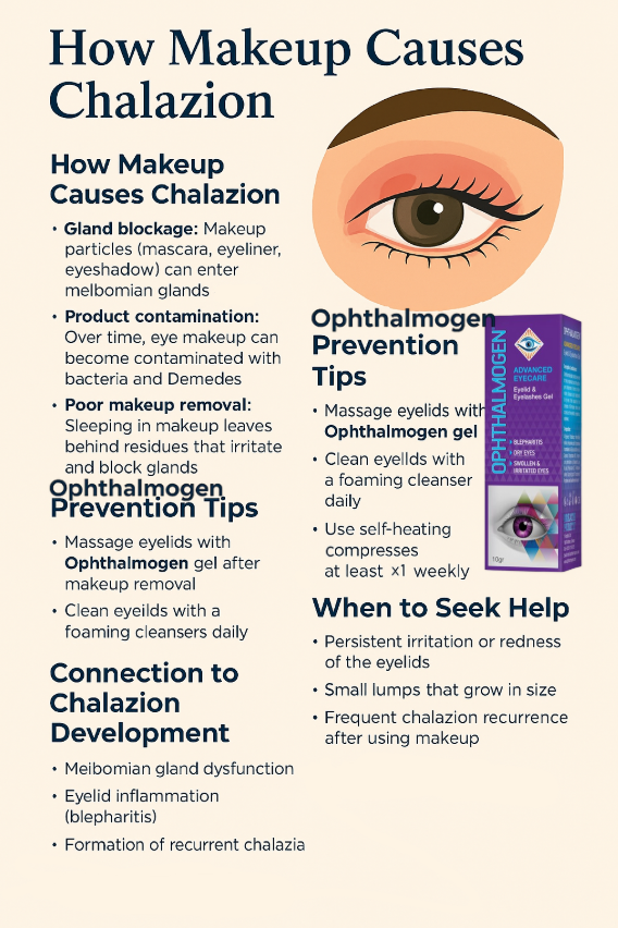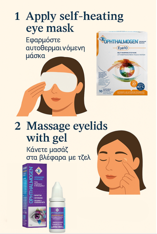 - After removing makeup, massage the eyelids with Ophthalmogen Gel to lower the risk of inflammation, MGD and chalazion.