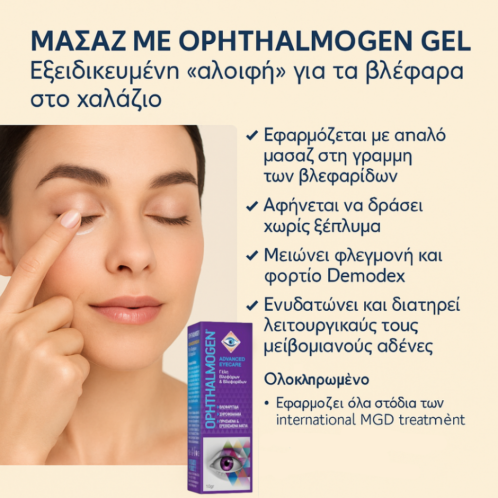 Ophthalmogen Gel acts as a specialized daily ointment for eyelid care: