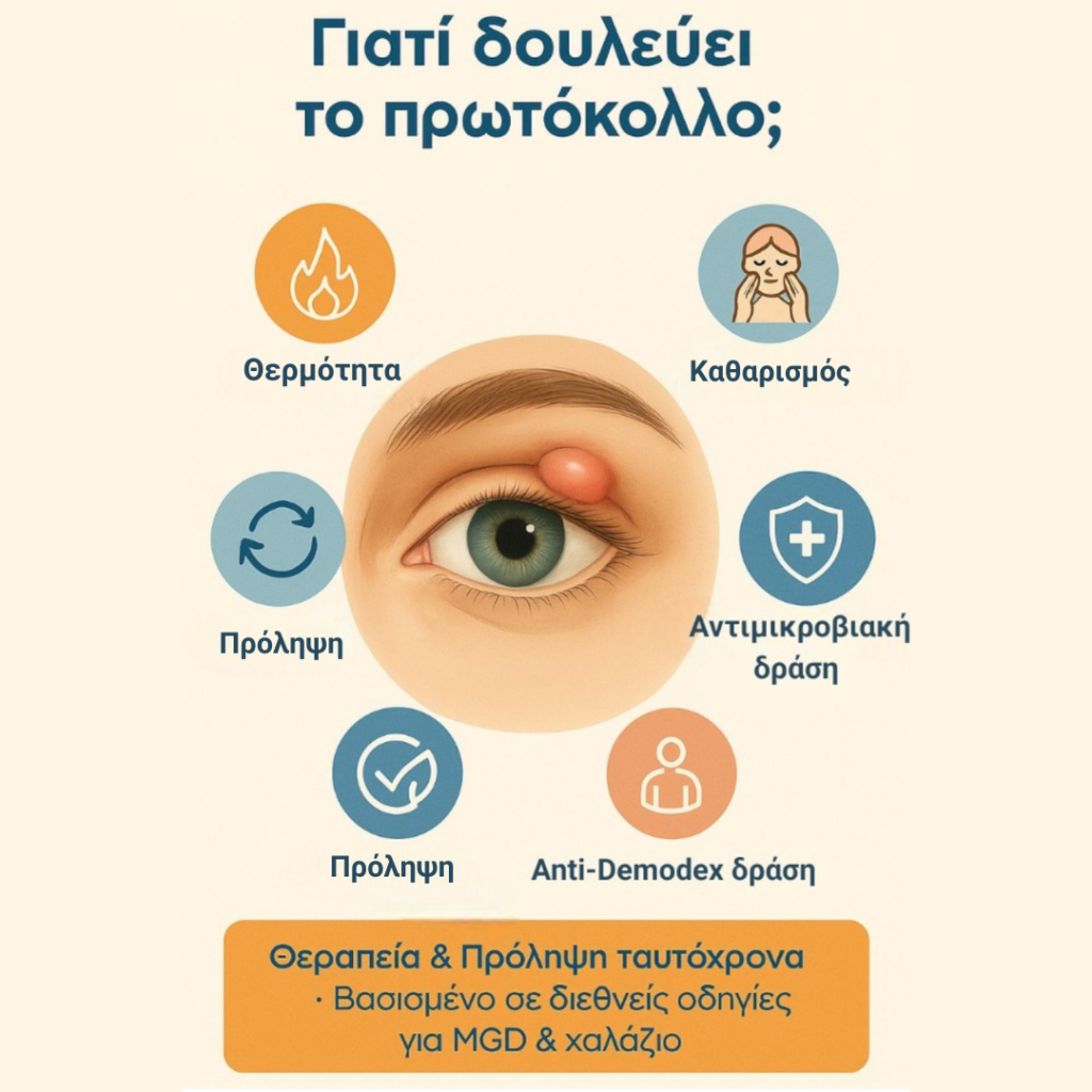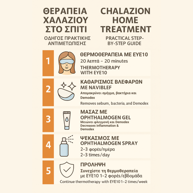 A chalazion is a small eyelid lump caused by the blockage and inflammation of the Meibomian glands (MGD). While not dangerous, it can cause swelling, discomfort, and cosmetic concerns. Proper and systematic home treatment can speed up recovery, especially when following an evidence-based protocol.