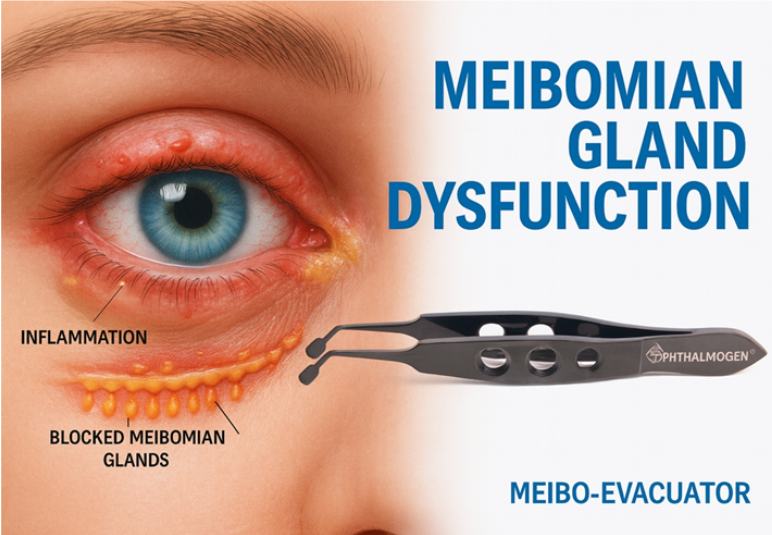 In advanced cases, gland evacuation performed by an ophthalmologist with OphthalmogenMeiboEvacuators: