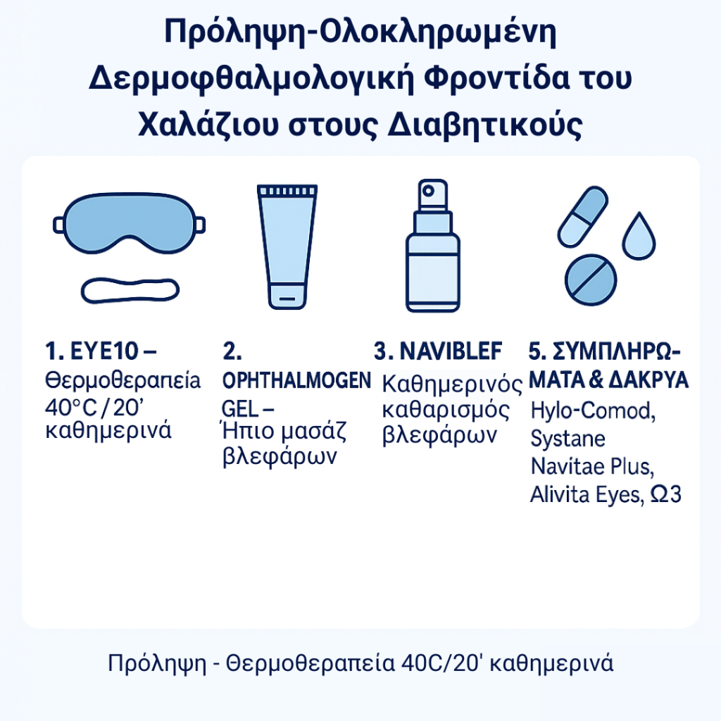 The best strategy for diabetics is daily eyelid and eye care, based on the dermophthalmology approach.