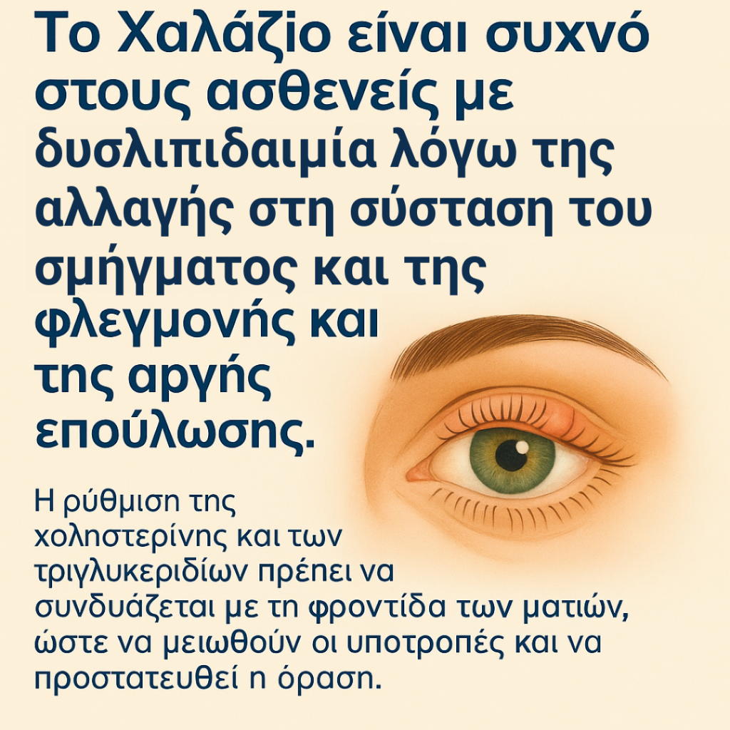 Dyslipidemia promotes chronic low-grade systemic inflammation. This inflammatory background extends to the eyelids, increasing the likelihood of inflammation and chalazia.