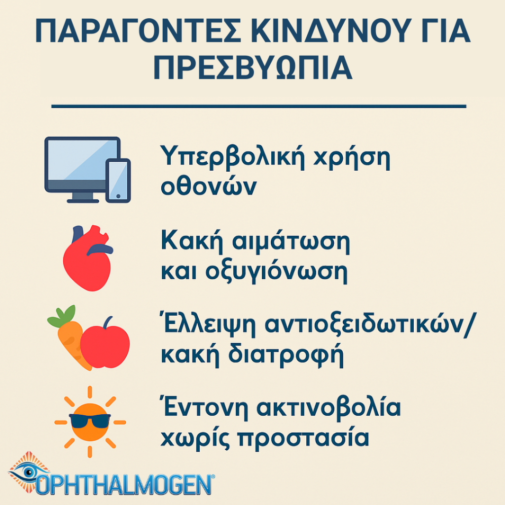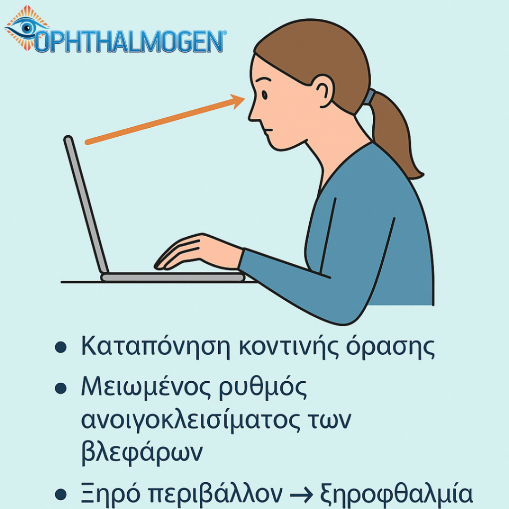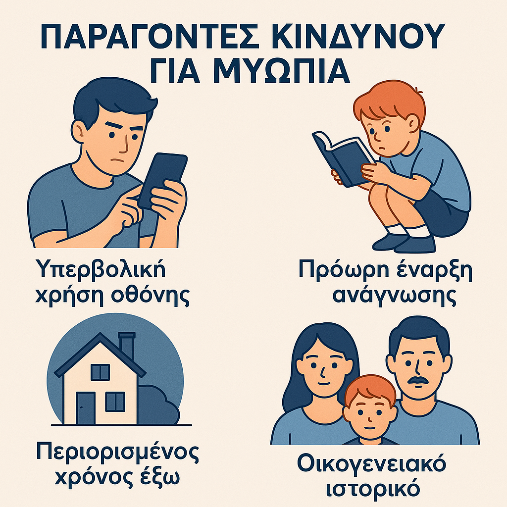 - Environment – Prolonged near work (computers, smartphones, books).