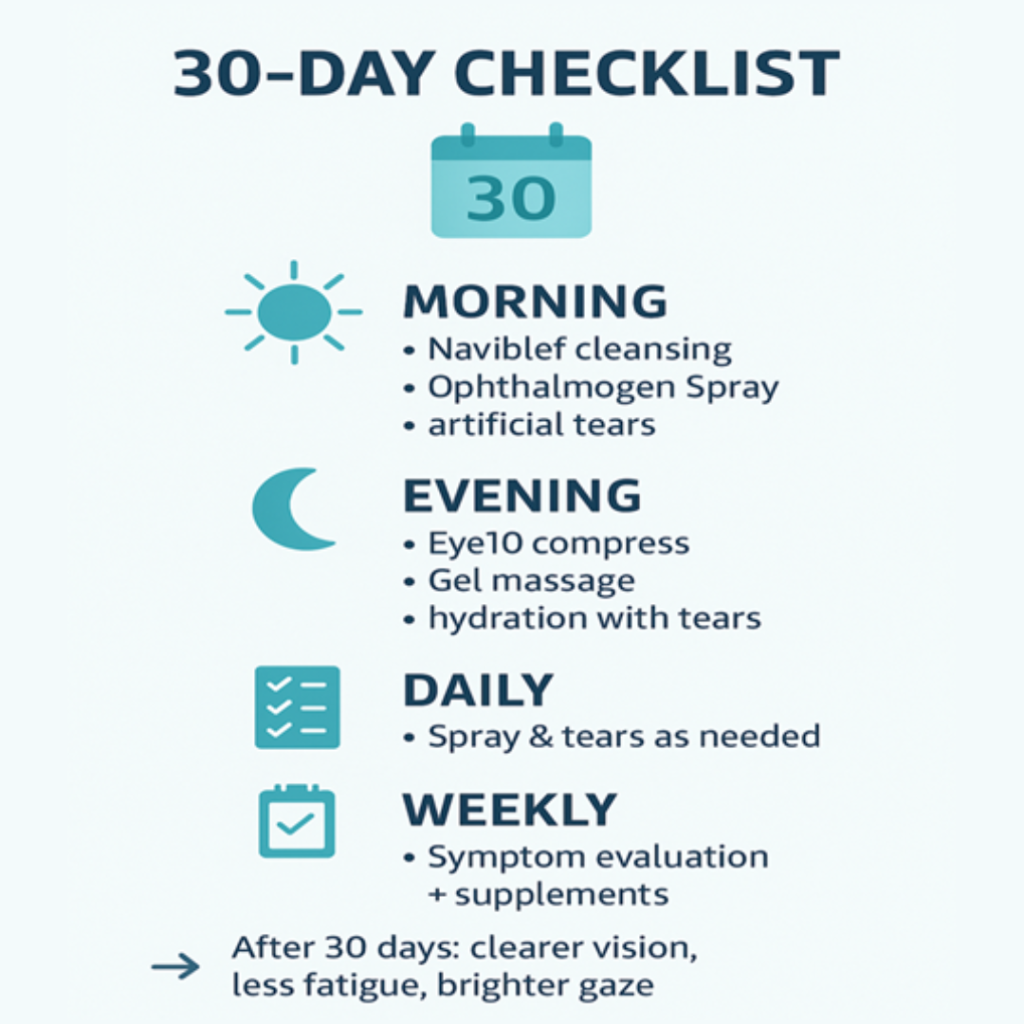 Sports: The ciliary muscle tires like any other. Warm compresses (OphthalmogenEye10) and eyelid massage (OphthalmogenGel) improve performance.