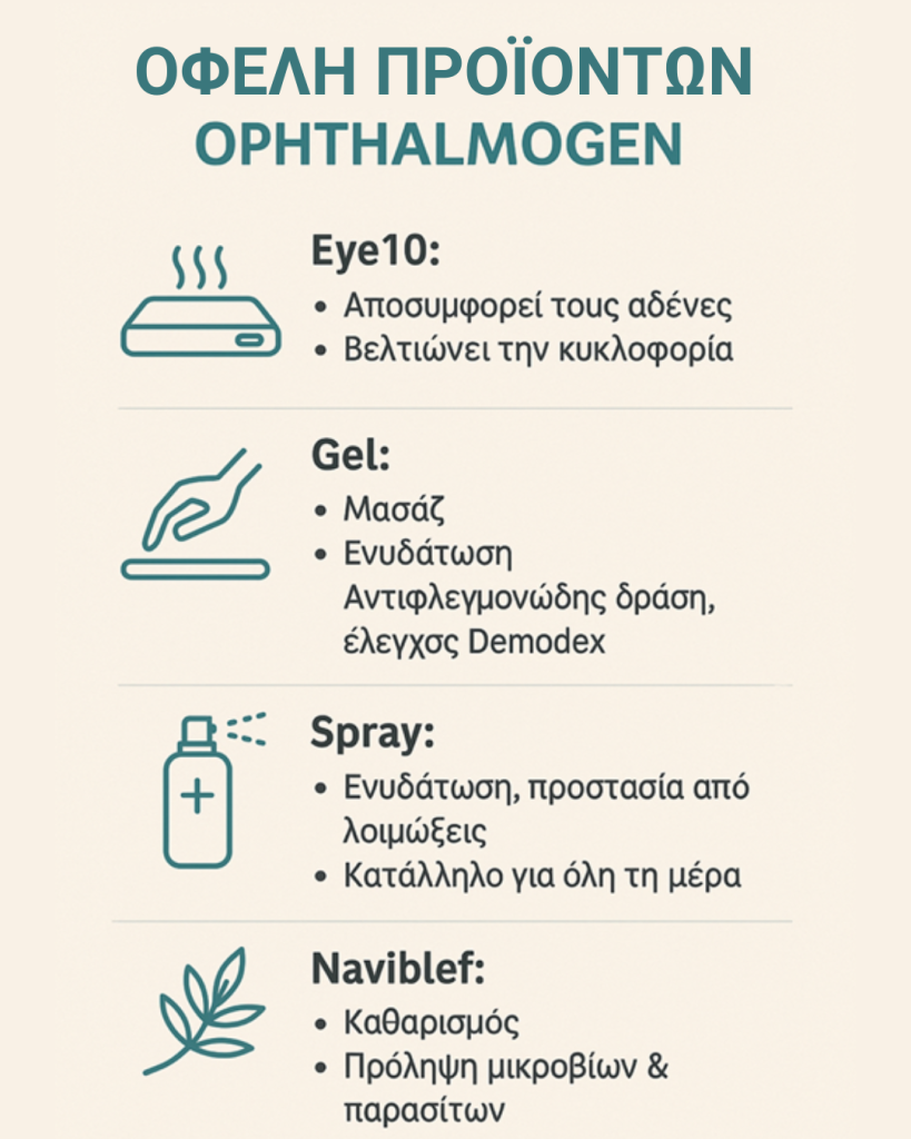 - Spray with Ophthalmogen Spray (hydration + antimicrobial protection). products Spray.