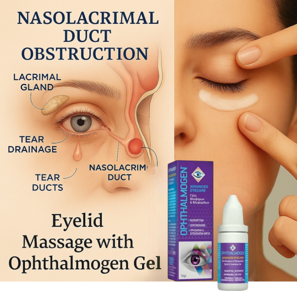 - Infants: Congenital obstruction affects 5–10% of newborns; in 90% it resolves spontaneously within the first year with massage & compresses.