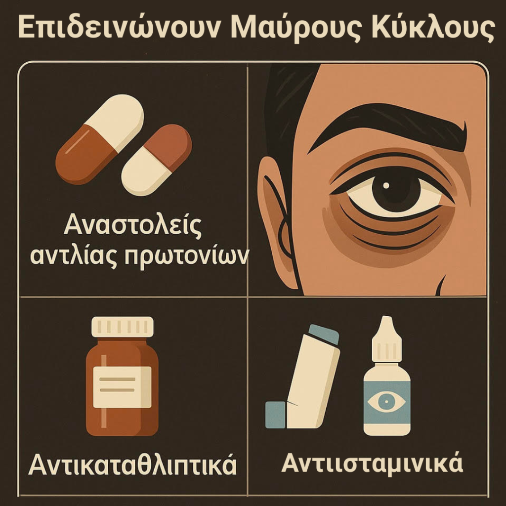 Dark circles linked to medications do not mean treatment should be stopped. Instead, complementary care can help reduce their appearance:
