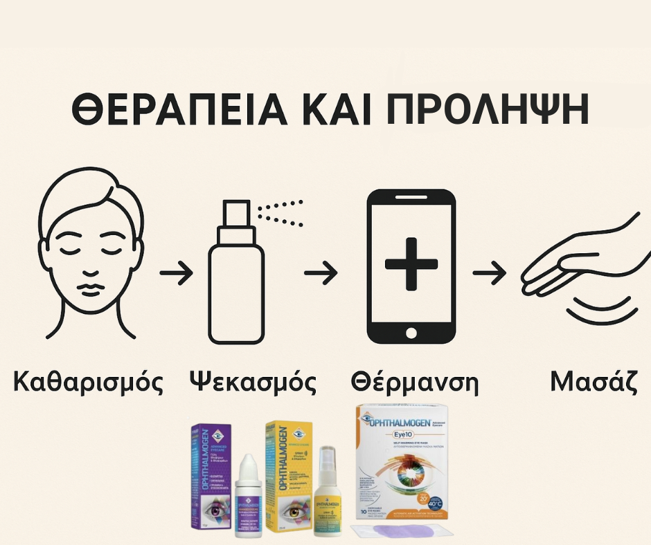- Self-heating compresses (Ophthalmogen EYE10) → improve microcirculation and meibomian gland function.