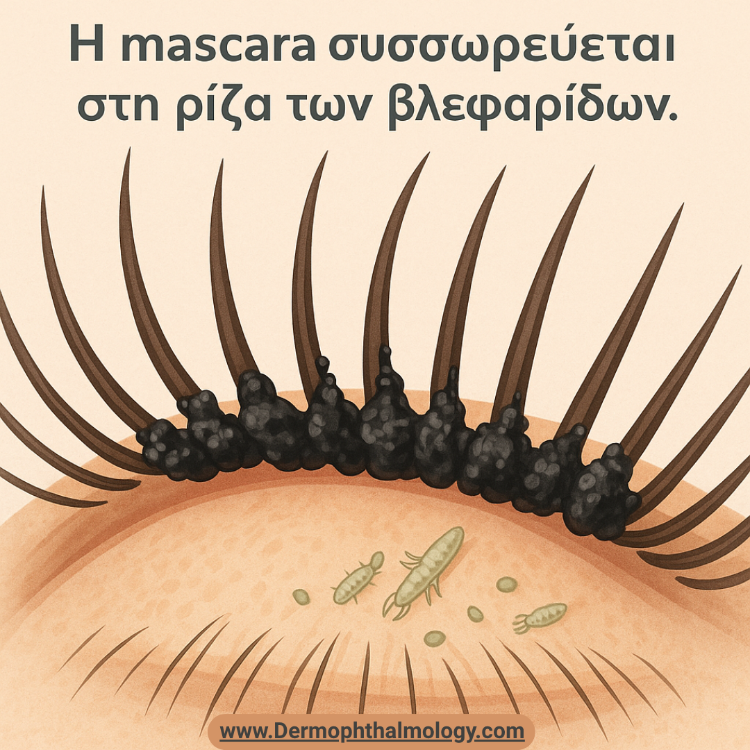 - Mascara: accumulates at the lash roots, creating residue that fosters bacteria and Demodex mites.