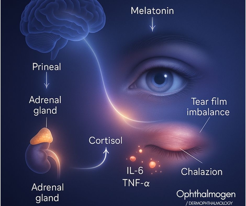 Increase Cortisol → activates IL-6 and TNF-α (key cytokines in eyelid inflammation)