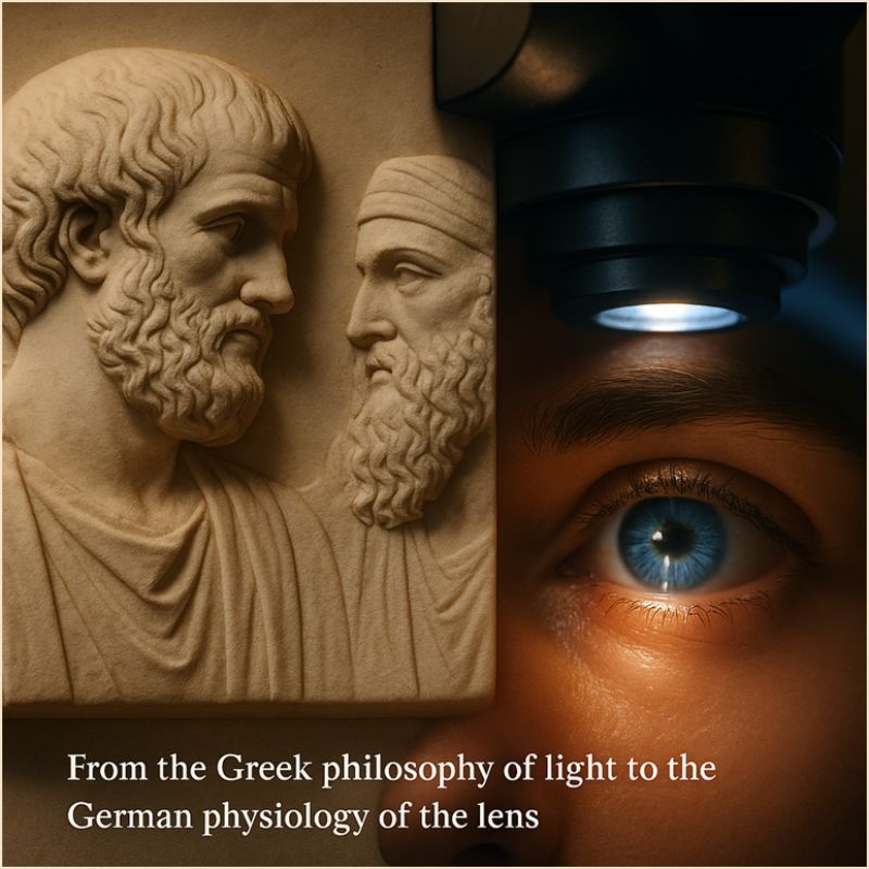 The quest to understand vision began in ancient Greece. Aristotle (384–322 BC) described sight as a “fusion of light and matter,” recognizing the need for a clear medium — a concept that foreshadowed today’s understanding of the tear film.
