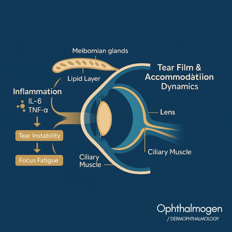 Craig et al., Ophthalmic Physiol Opt, 2021: Fluctuations in tear film stability cause micro-variations in accommodation and near-vision fatigue.