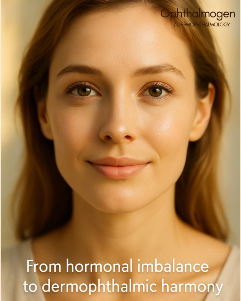 - Female, 44 years old, Hashimoto’s hypothyroidism → persistent dark circles and puffiness. With Ophthalmogen Gel + EYE10 + artificial tears → significant improvement after 2 months.