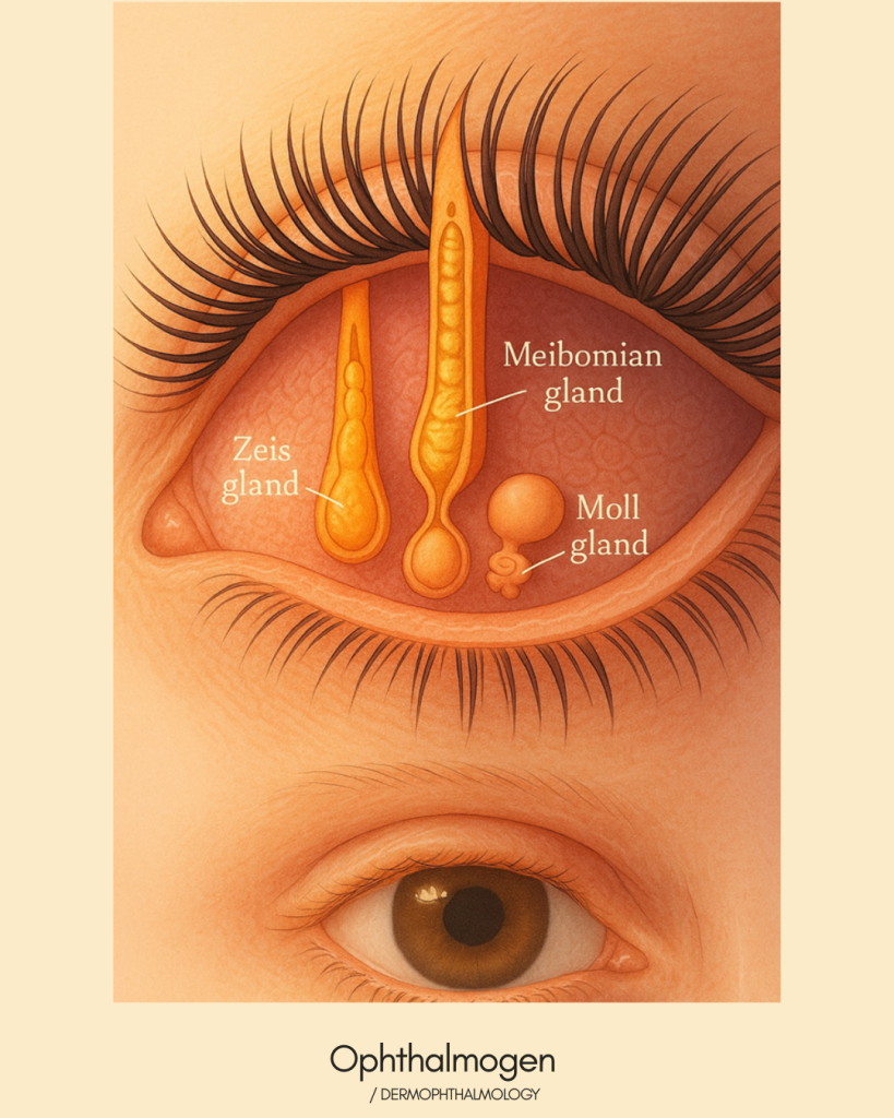 - Zeis glands – Sebaceous glands that lubricate the lash shaft.