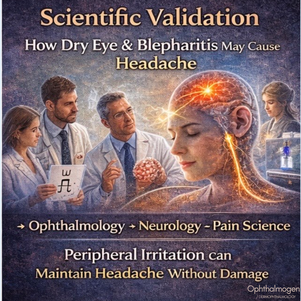 Wherever continuous muscular and neural tension exists, headache finds fertile ground.Here, blepharitis is not merely a local condition.It is a central component of the Eye–SkinAxis.