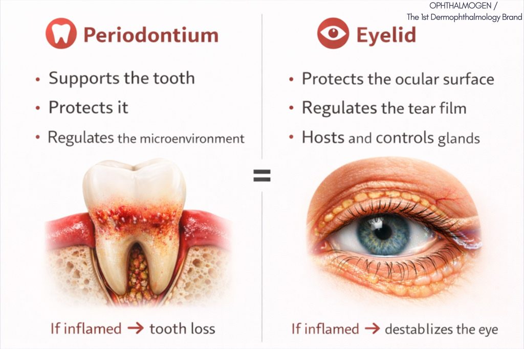 The eyelid is to the eye what the periodontium is to the tooth.And its hygiene changes the course of vision.This sentence is not just powerful.It is scientifically grounded.