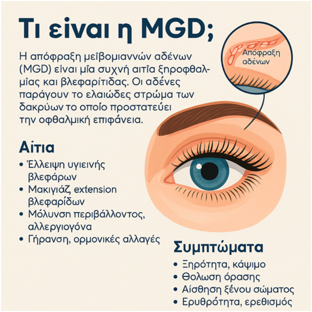 Εισαγωγή Η βιταμίνη Α είναι απαραίτητη για την υγεία των ματιών, τη σωστή λειτουργία του δακρυϊκού φιλμ και την άμυνα των βλεφάρων απέναντι σε φλεγμονές. Η έλλειψή της αυξάνει τον κίνδυνο για ξηροφθαλμία, δυσλειτουργία των μεϊβομιανών αδένων (MGD) και την εμφάνιση χαλαζίου. Πώς συνδέεται η Βιταμίνη Α με το Χαλάζιο Η βιταμίνη Α: Ρυθμίζει την […]